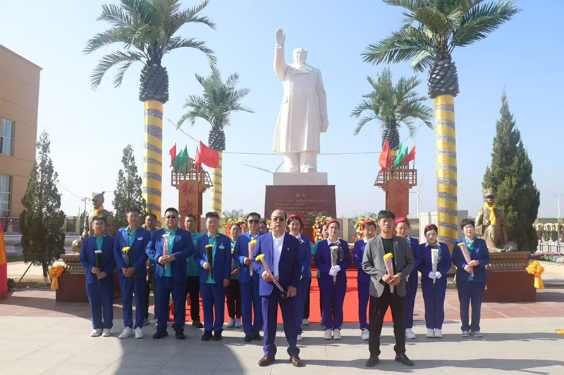 日今天是纪烈士念日,天堂墓园全体员工在自修的11公里道路上插满了巜向大庆公安英烈学习》巜向大庆公安英烈致敬》彩旗,并向毛主席汉白玉像敬献花篮,向大庆公安英烈献花致敬!